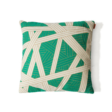 Nastri Green Cream Patterned Pillow